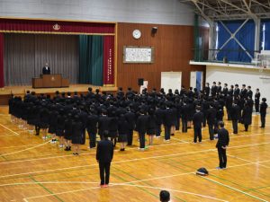 本日から、新年度の1学期が始まりました。今年度からお世話になる先生方の紹介・挨拶等の新任式を行ったあと、始業式を行いました。春休み明けで久々に会う友人との会話や、新クラスの発表の時に、生徒の元気な様子がうかがえました。3年生は希望の進路を実現していくこと、2年生は自分の進路について考えていく時期であること等の話がありました。