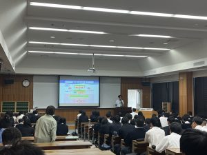 5月16日、大塚製薬株式会社 熱中症アドバイザー 荒木 宗一郎さんをお招きし、運動部員・生徒会執行部員・学園祭リーダー等を対象に、熱中症予防の研修会を行い、およそ80名の生徒が参加しました。